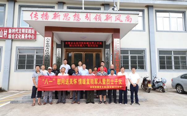 值此中國人民解放軍建軍96周年到來之際,為進一步弘揚擁軍優(yōu)屬、尊老愛老的光榮傳統(tǒng),7月28日上午,金裕制罐黨支部開展“八一”慰問送關懷活動,總經(jīng)理章福春等公司領導來到青山鄉(xiāng)銅山村慰問退伍老兵、烈士家屬和困難退役軍人,為他們送去節(jié)日慰問品,表達了公司的關心和關愛。